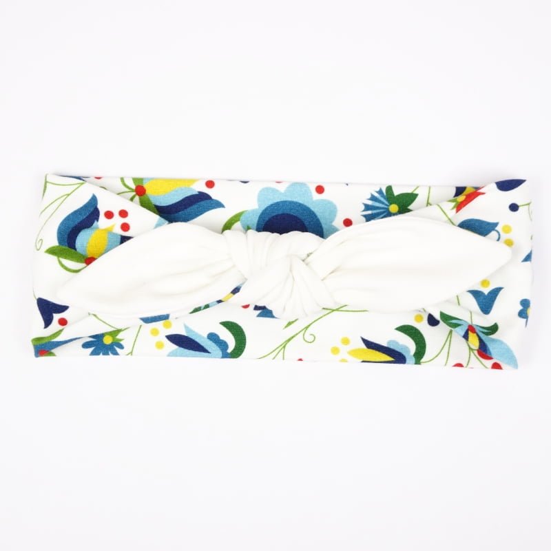 Przepiękna opaska pin-up folk z czerwonym przewiązaniem doda uroku każdej dziewczęcej stylizacji. Wykonana jest z bardzo dobrej jakości bawełny typu jersey z folkowym nadrukiem. Tkanina ta jest bezpieczna dla najmłodszych, ponieważ posiada certyfikat OEKO-TEX 100. Twoja księżniczka może ją nosić na co dzień, ale także świetnie sprawdzi się podczas na przykład sesji zdjęciowej. Jej szerokość to 7,5 cm, doskonale chroni uszy przed wiatrem.